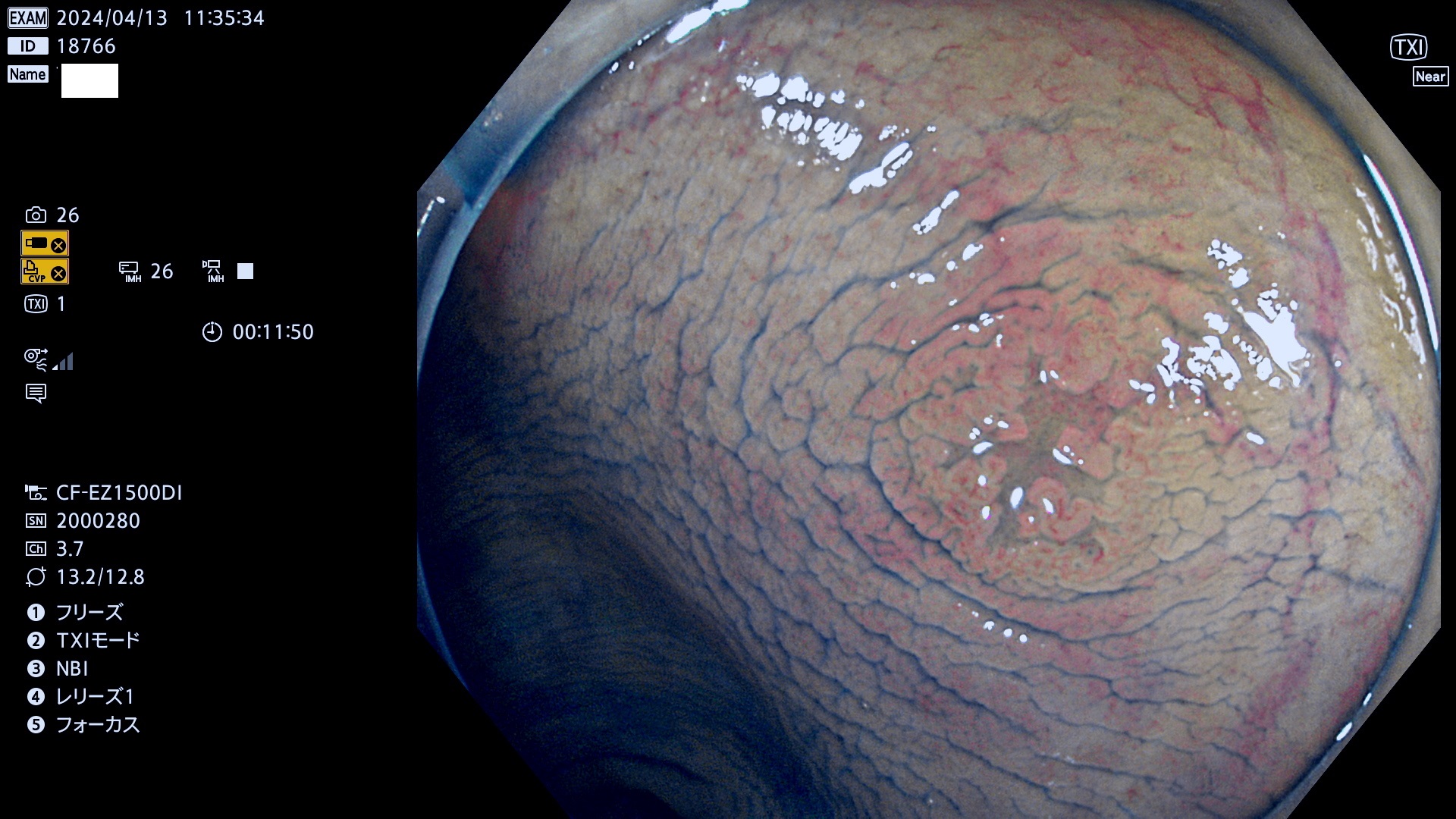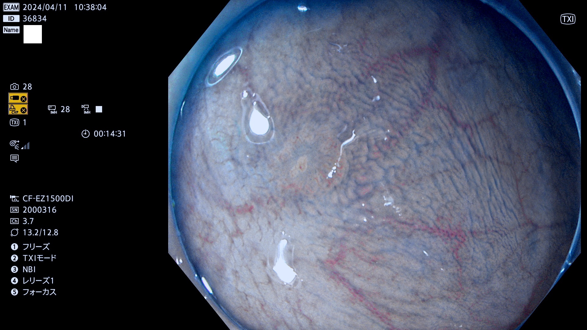 表面型腺腫(Flat Adenoma)の中で、完全に平坦な物をUb、陥凹している物をUcと呼びます。平坦隆起型(Ua)よりも、発見が難しく危険な病変です。