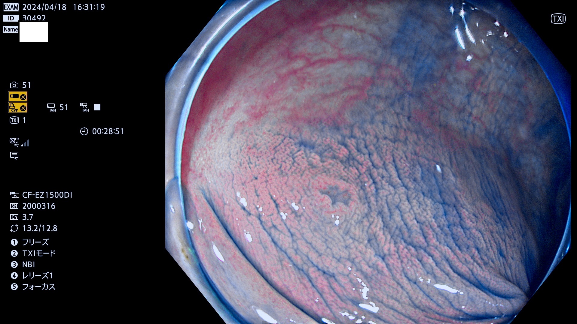 表面型腺腫(Flat Adenoma)の中で、完全に平坦な物をUb、陥凹している物をUcと呼びます。平坦隆起型(Ua)よりも、発見が難しく危険な病変です。