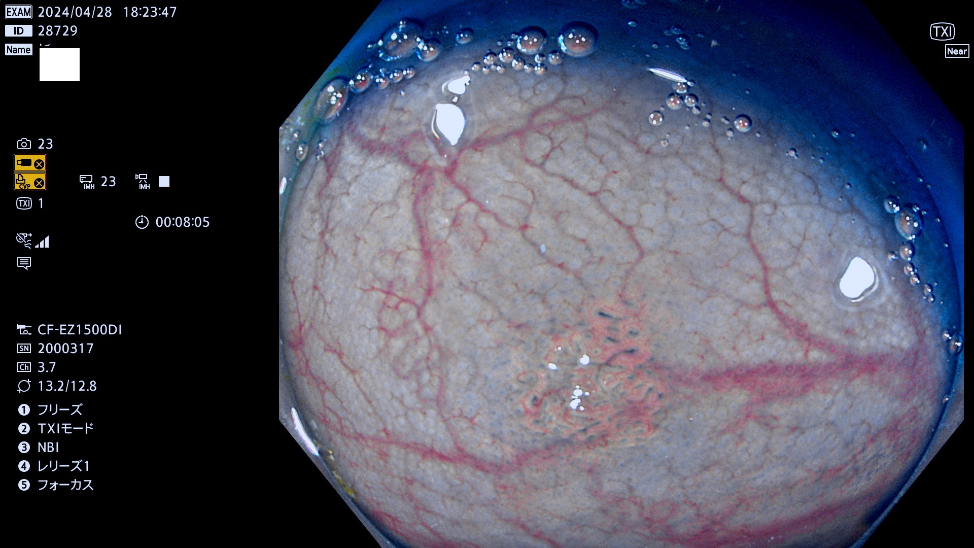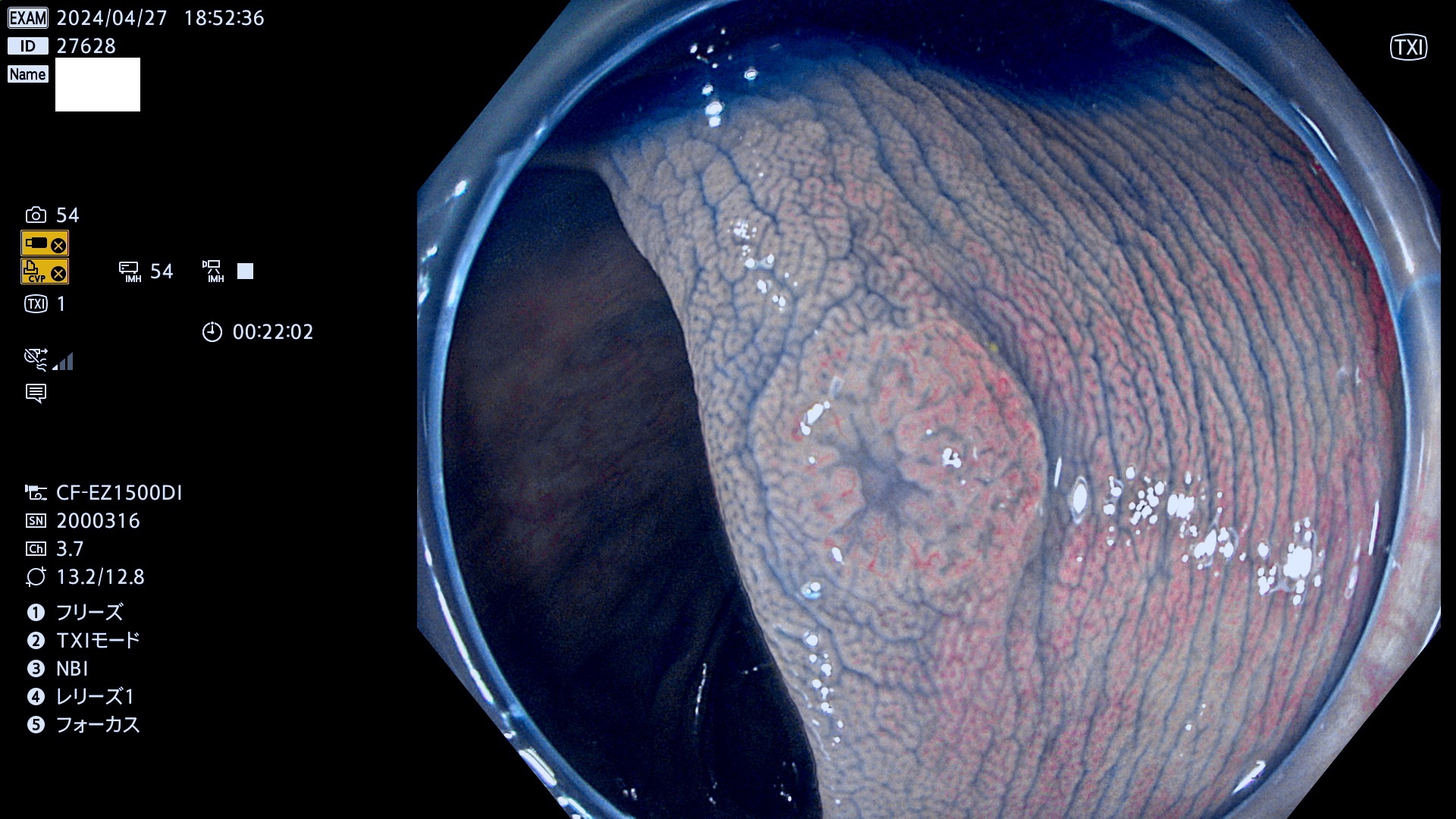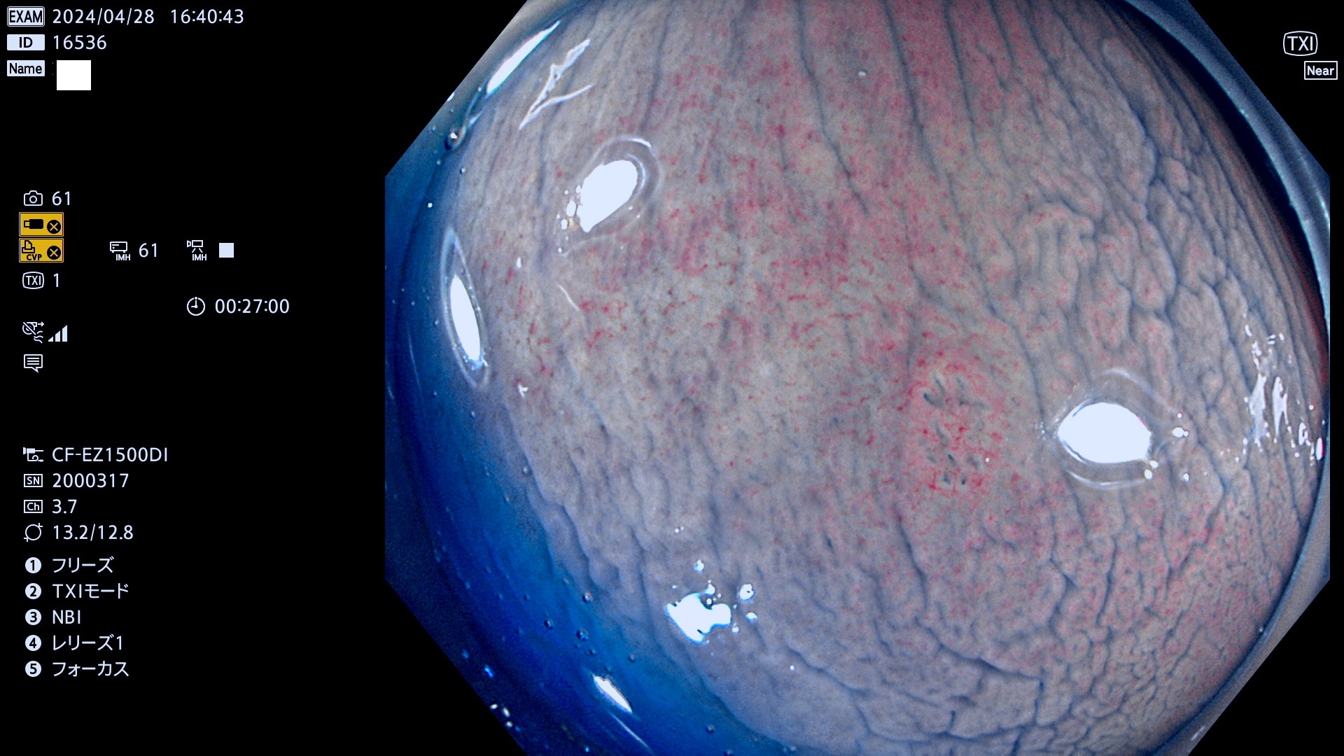 表面型腺腫(Flat Adenoma)の中で、完全に平坦な物をUb、陥凹している物をUcと呼びます。平坦隆起型(Ua)よりも、発見が難しく危険な病変です。