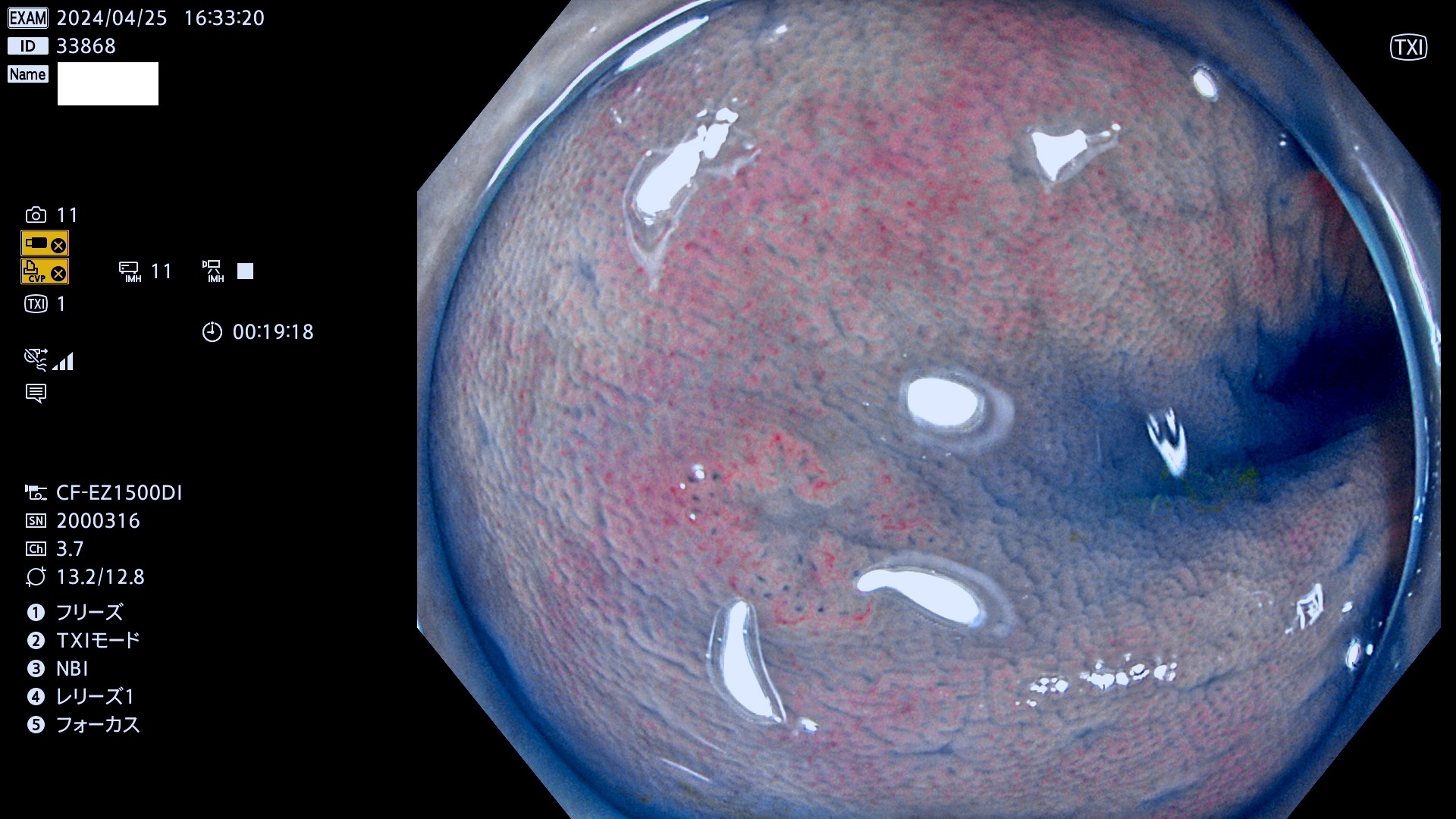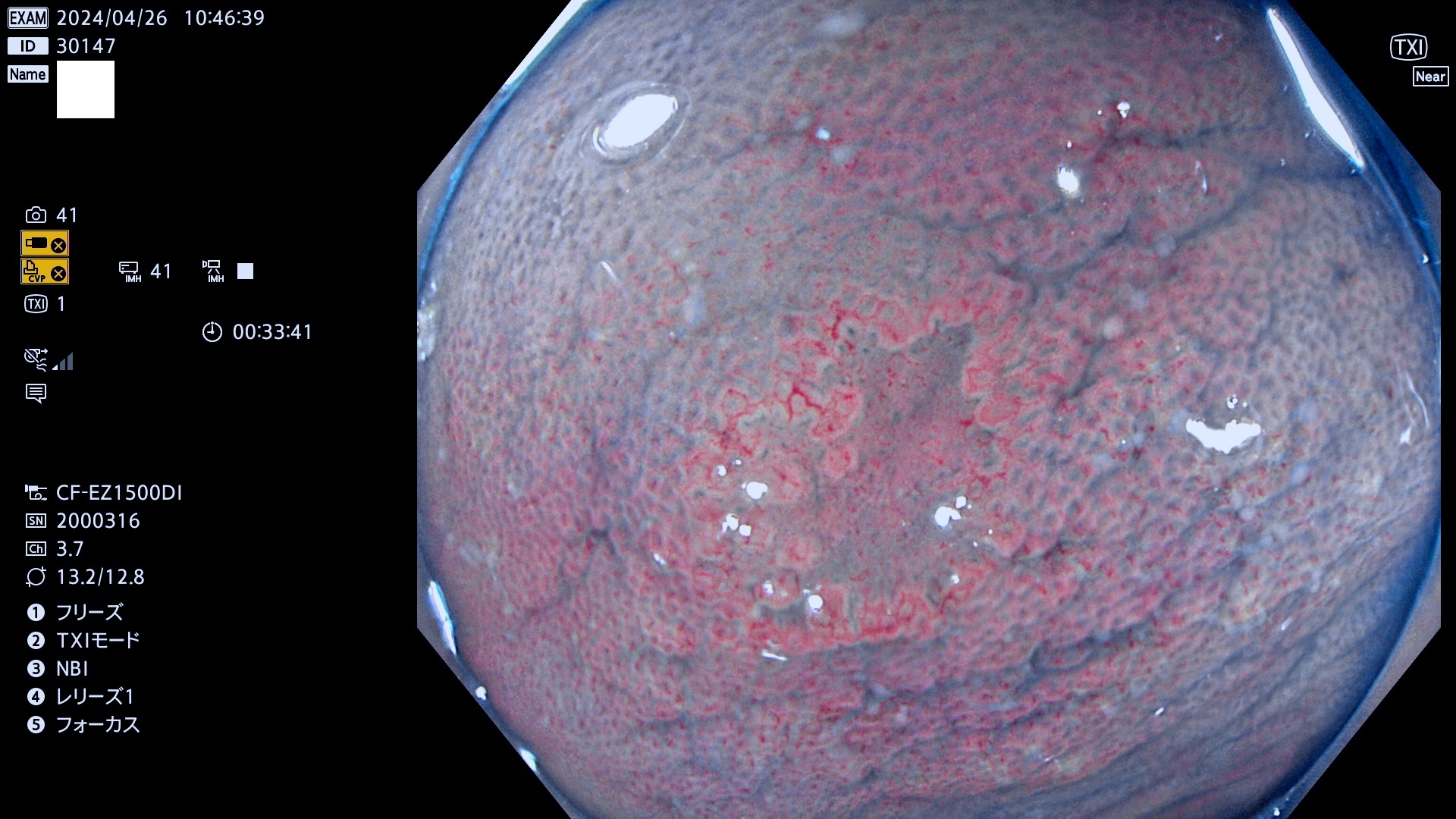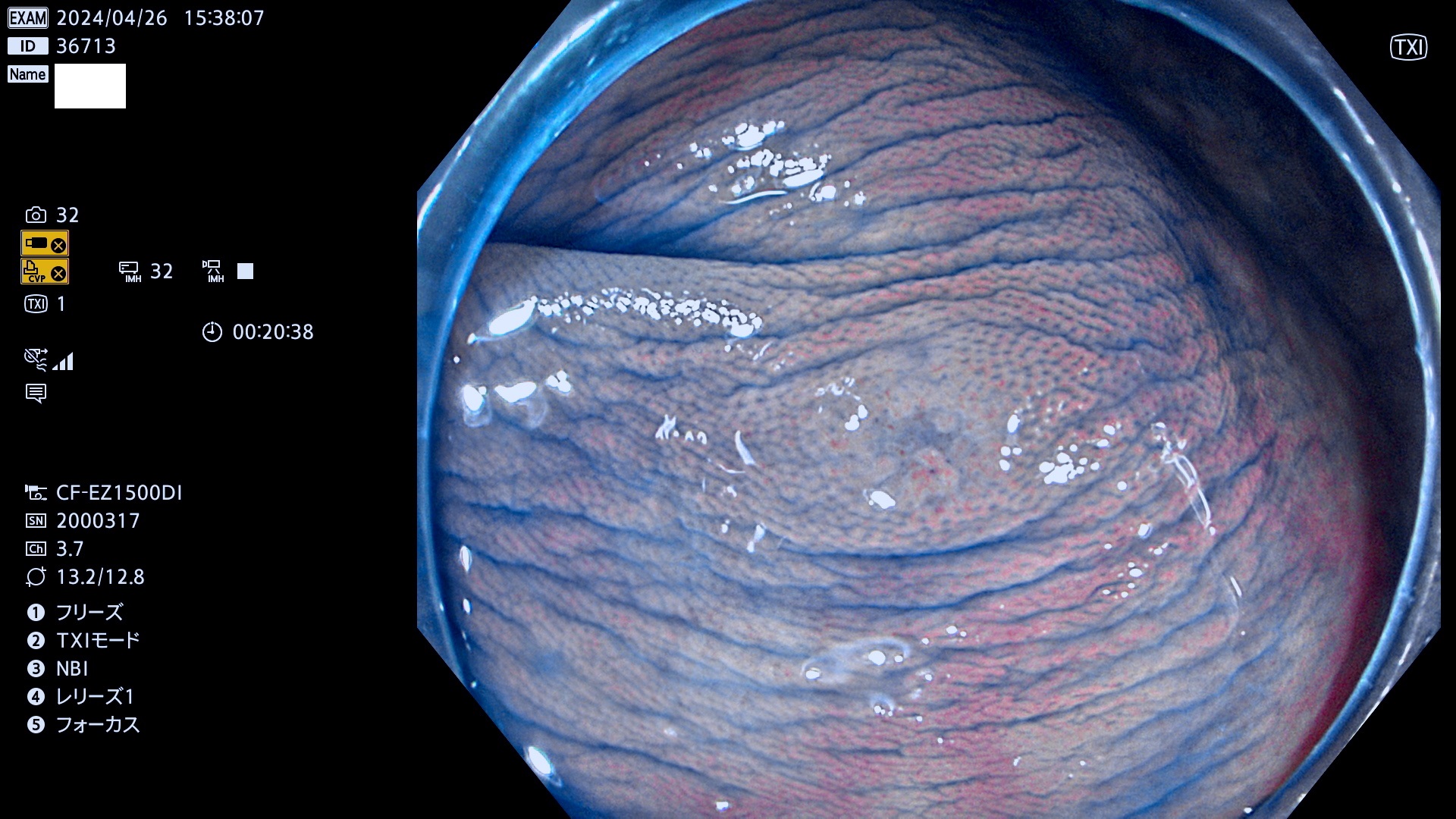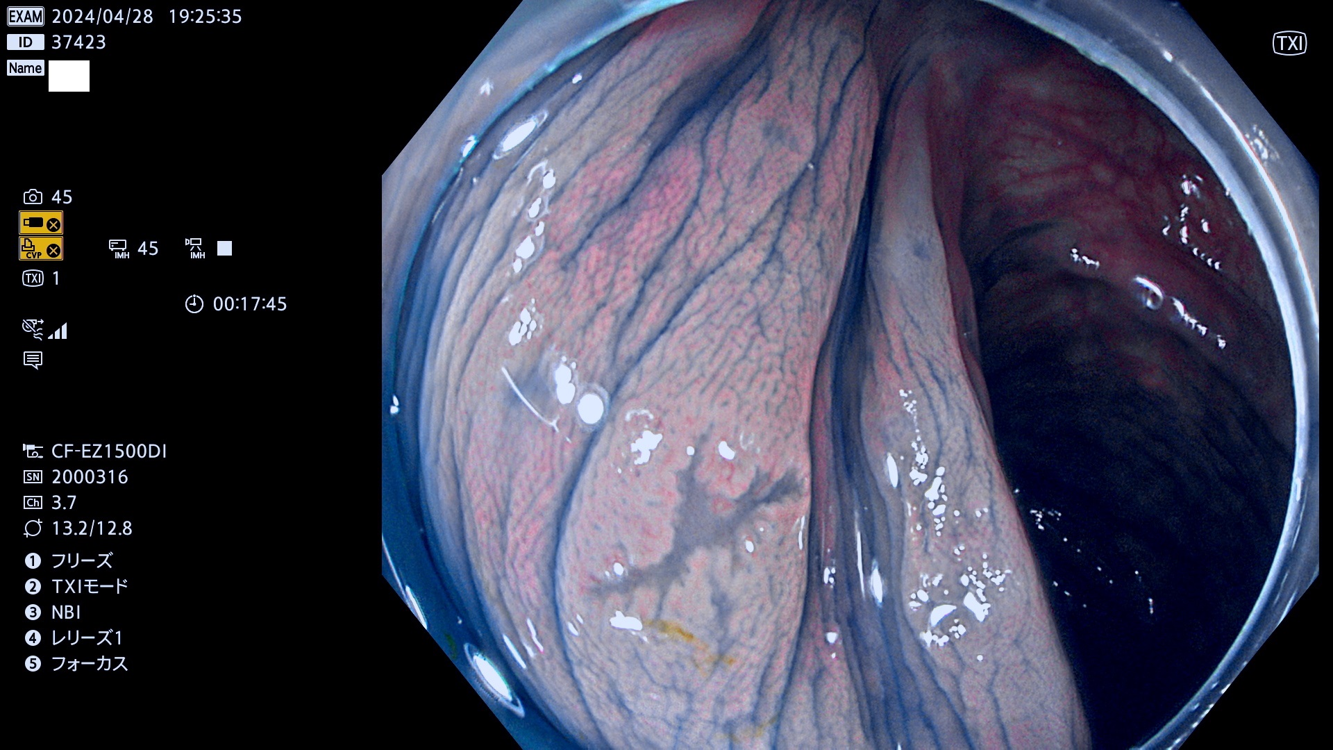 表面型腺腫(Flat Adenoma)の中で、完全に平坦な物をUb、陥凹している物をUcと呼びます。平坦隆起型(Ua)よりも、発見が難しく危険な病変です。