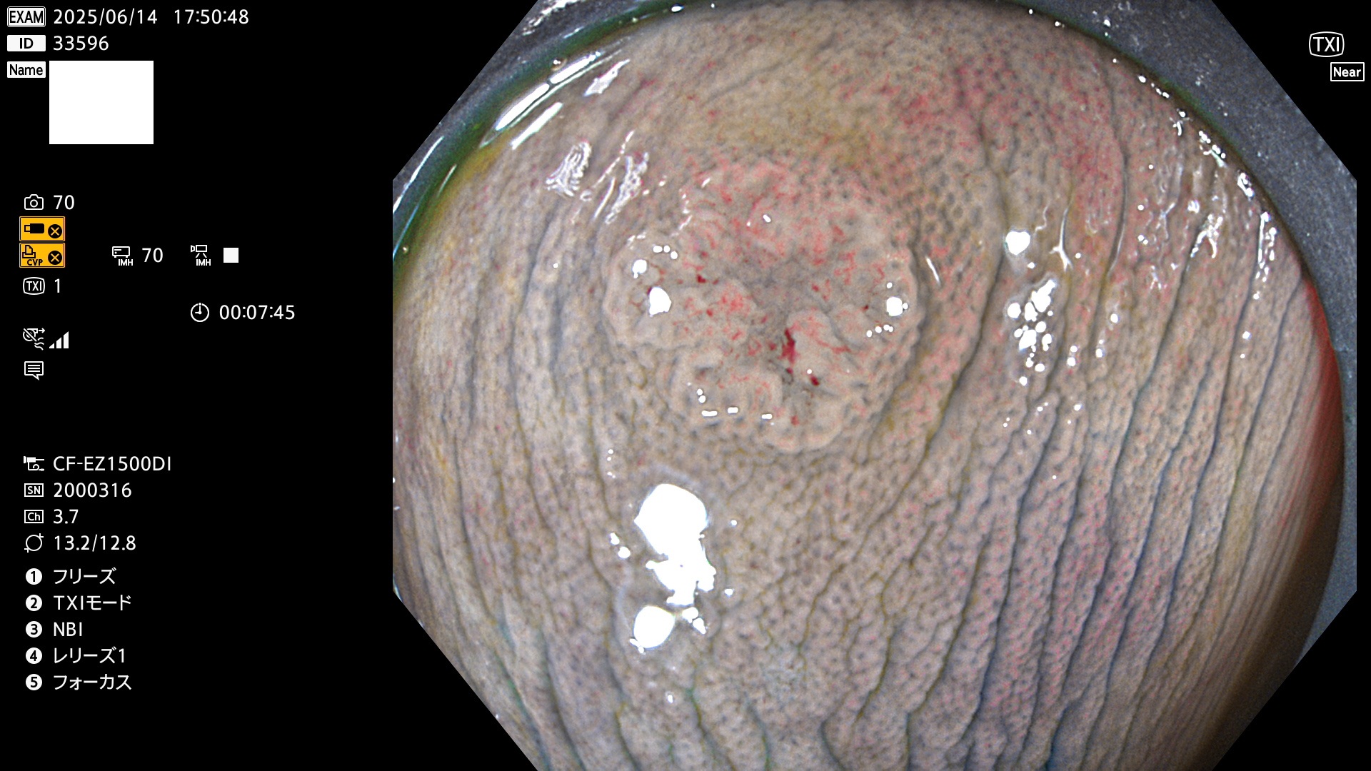 完全に平坦な物をUb、陥凹している物をUcと呼びます。Ubは認識が困難で、Ucはびらん(炎症)と紛らわしいために見落とされやすく、「内視鏡後・大腸癌」の原因になります。