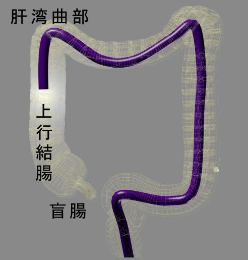 「内視鏡後・大腸癌」は上行〜肝湾曲部(体の右側です)に最も好発します。つまり、ここが「見落としが最も多い部位」です。