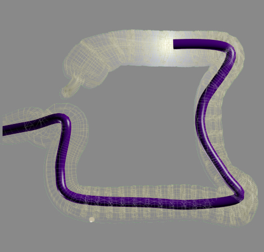(2)体位を変えて右を上にする。(空気で膨らませて観察しますから観察部位を上に向ける訳です)