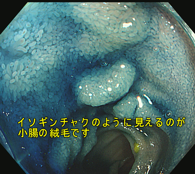 小腸柔毛の写真撮影 見落としの原因として、意外と多いのが「実は内視鏡が、盲腸まで到達していなかった」という単純なミスです。 これは通常の腸では起きないのですが、腸が非常に過長な場合に起きます。腸の強い屈曲を盲腸と誤認してしまうのです。 このミスを防ぐためには「確実に盲腸に到達した証拠=小腸の柔毛」を撮影することが大事です